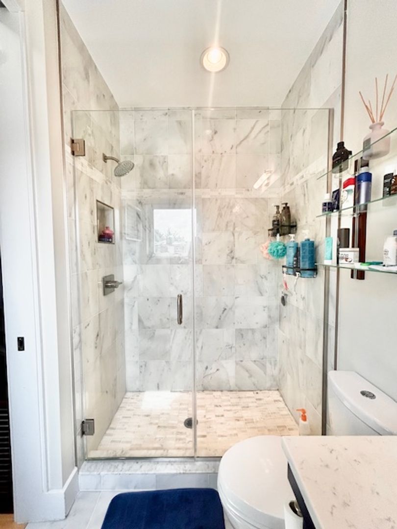 Marble tiled bathrooms with frameless glass showers and designer fixtures. Metro nearby. Parking available. Don't wait, stop by today!