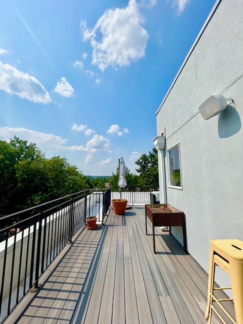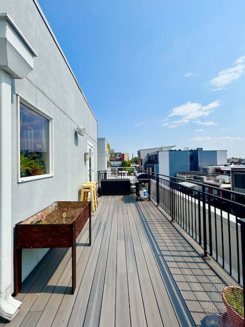 2br/2ba penthouse unit features 9+ft ceilings, wide plank maple flooring, spacious private rooftop deck and den with wine fridge, Bosch/Jenn Air stainless steel appliances, gas range and quartz countertops.