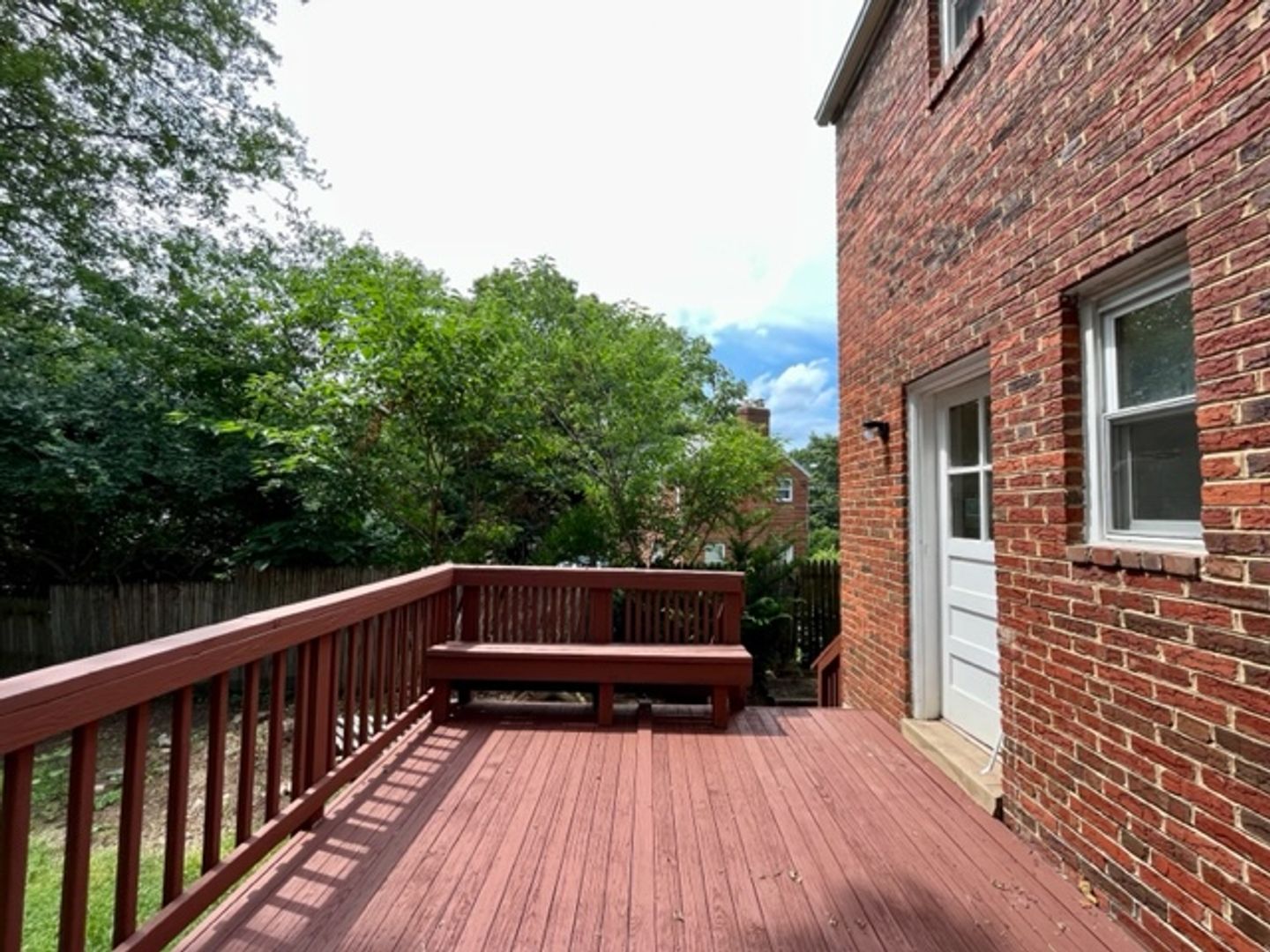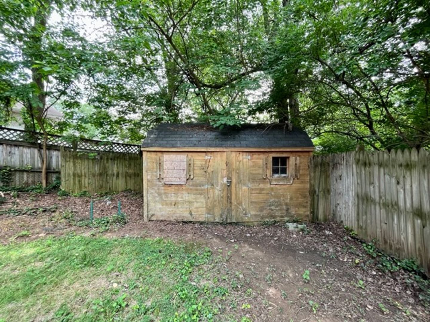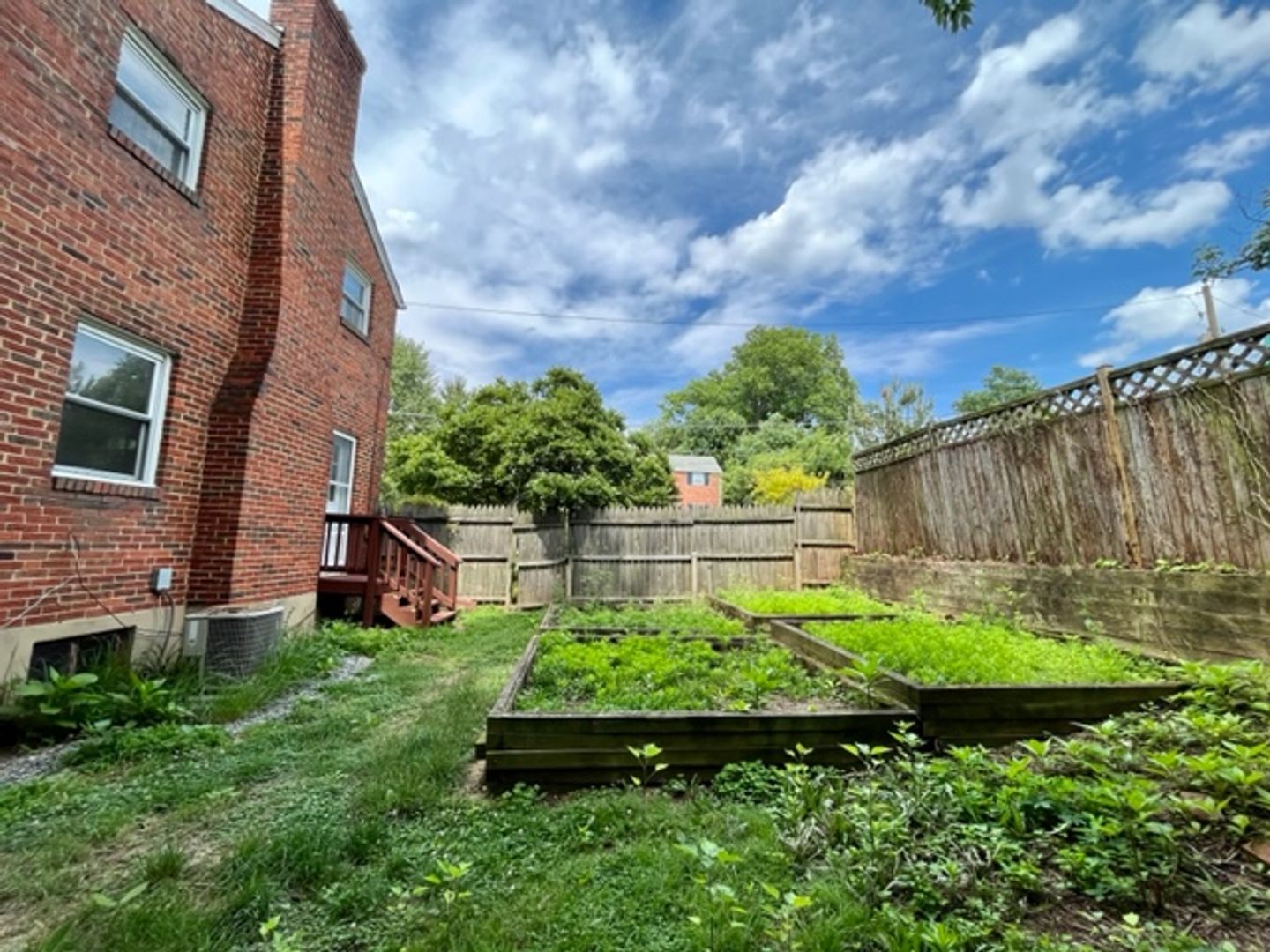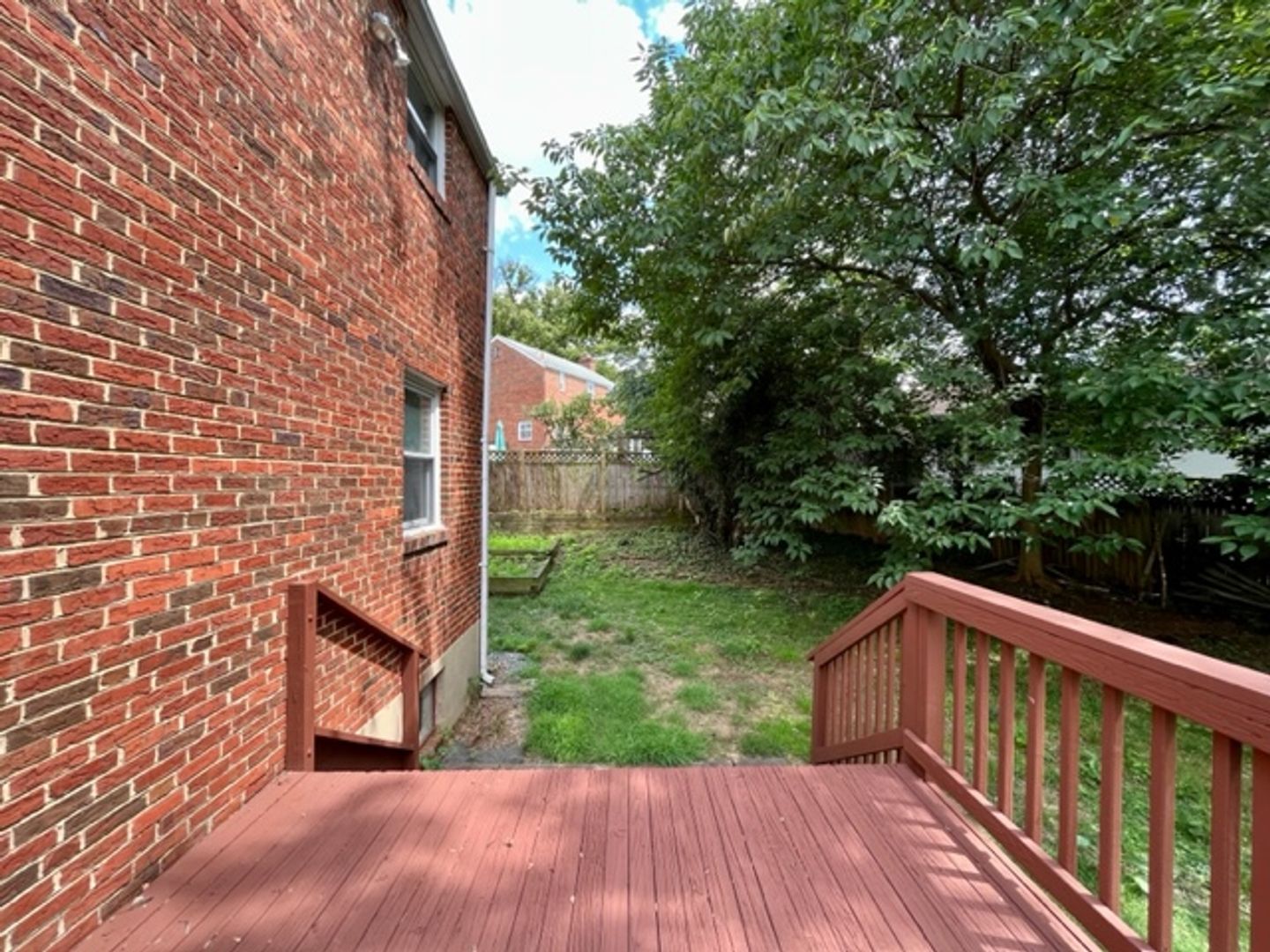 Outside, the backyard provides a peaceful retreat and is ideal for relaxation or outdoor activities.