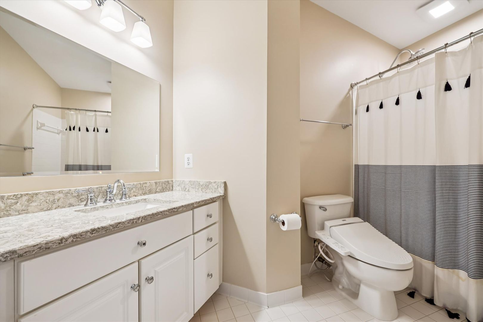 UPPER LEVEL: The expansive Primary Suite is a true retreat, offering a Sitting Room, two custom walk-in closets, dressing room with triple mirrors, and a spa-like renovated bath with soaking tub, oversized frameless glass shower, dual vanities, private water closet, and tray ceiling. Three additional bedrooms, each with renovated en suite bath and walk-in closet, complete this level. Overlooks to both the foyer and family room below fill the space with light.